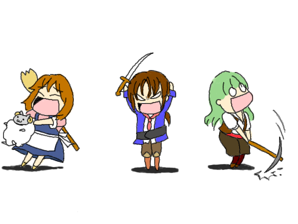 自キャラ3人娘でタミフルリバー三姉妹パロ。